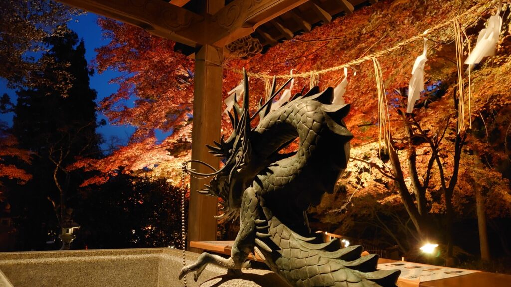 紅葉ライトアップでは、幻想的な光が森を包み込みます✨