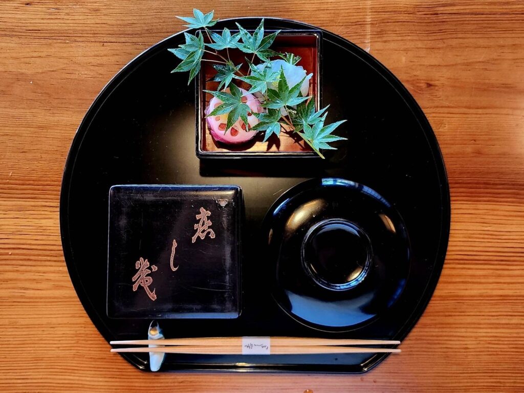 「恋しき」でお食事を楽しんでいただけます。中庭に広がる秋の彩りと、旬の味覚。