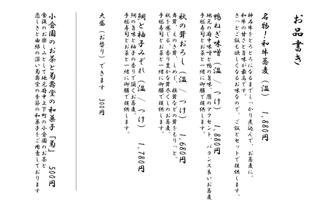 その日提供する分だけを毎朝、丁寧に打ち、打ちたて・湯がきたての風味をお楽しみいただけます。