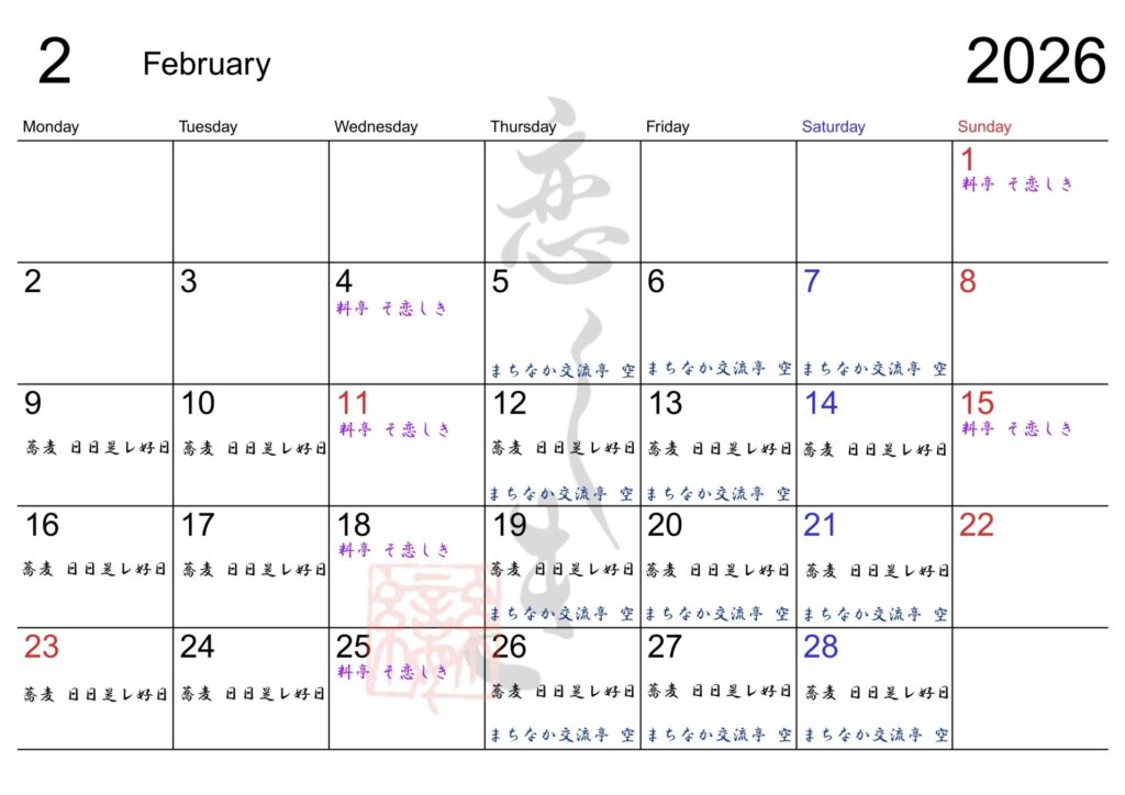 【基本営業日】カレンダー通り